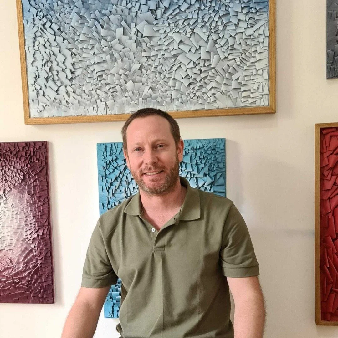 Rodrigo Franzao is a contemporary artist based in New Orleans, whose artistic practice spans New York, New Orleans, and São Paulo, focusing on textile art and mixed media. Utilizing fabrics, acrylic paints, and eco-friendly paper, Franzao emphasizes sustainability and environmental responsibility. His works create a dynamic interplay of light, shadow, color, and texture, through carefully folded strips of paper and layered canvases, evoking a kinetic art effect. With a background in Literature and Arts, an MBA in Museology and Art History, and specializations in Psychopedagogy and Art Therap
